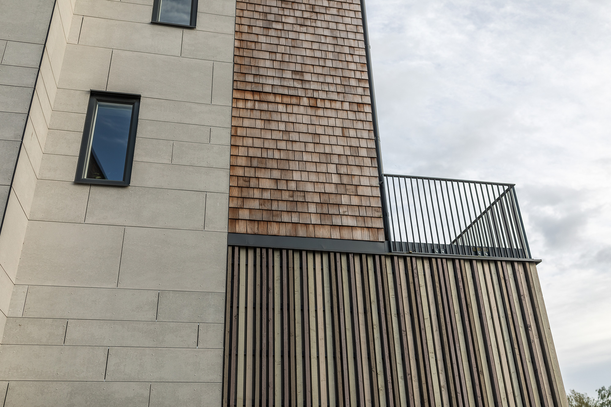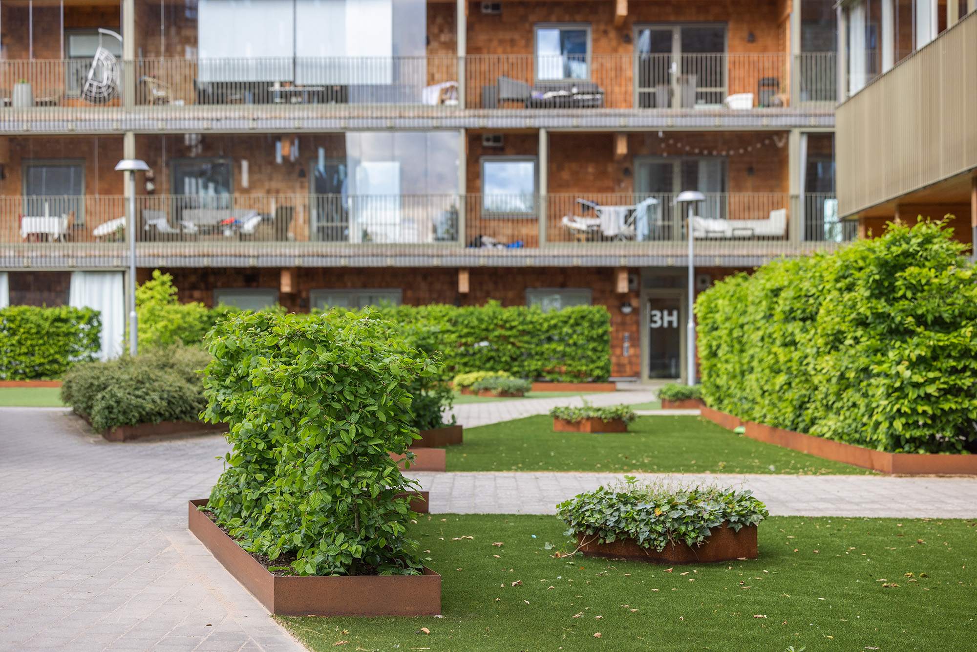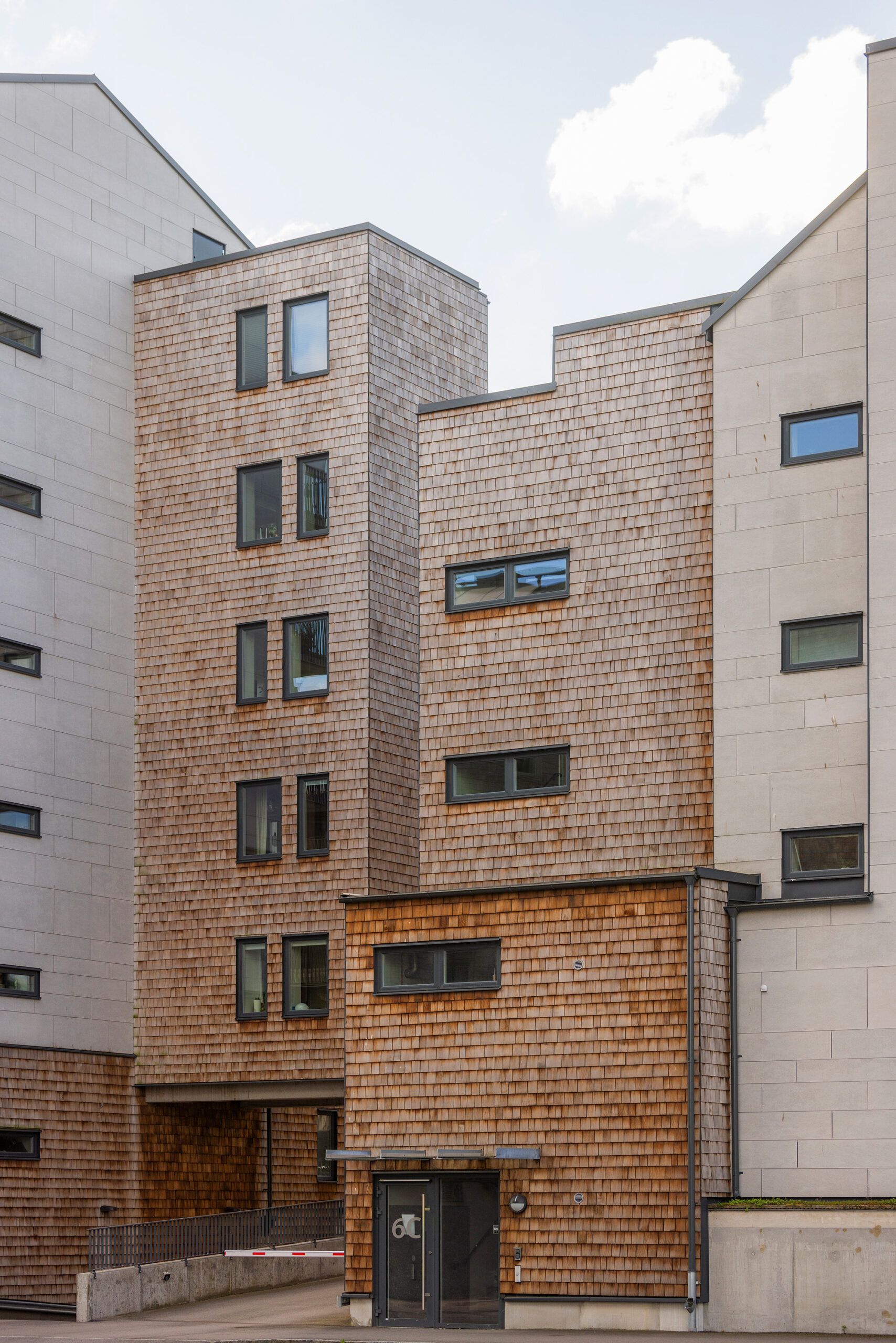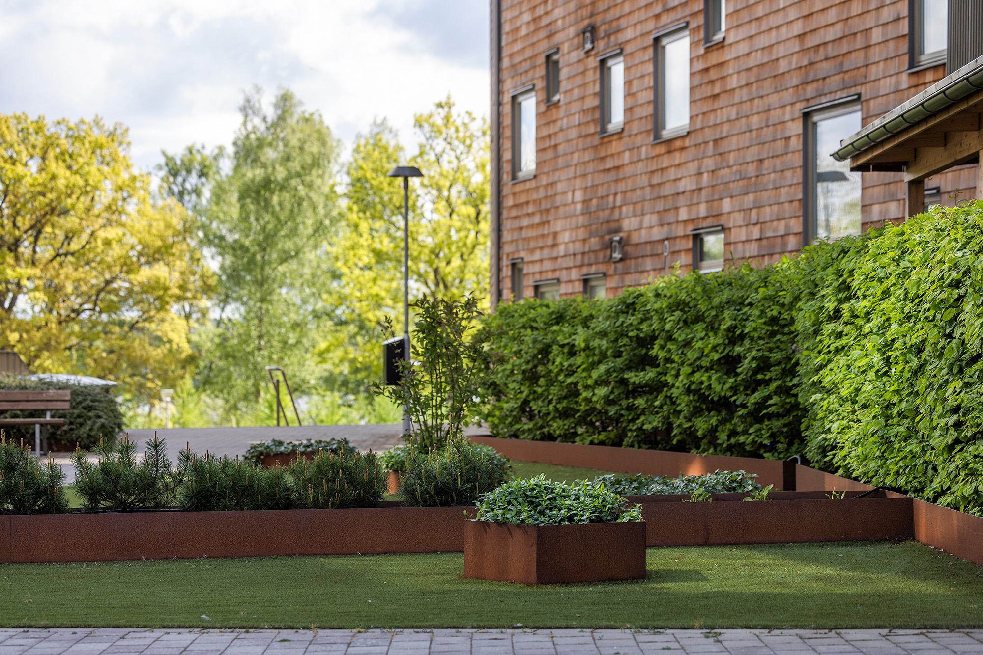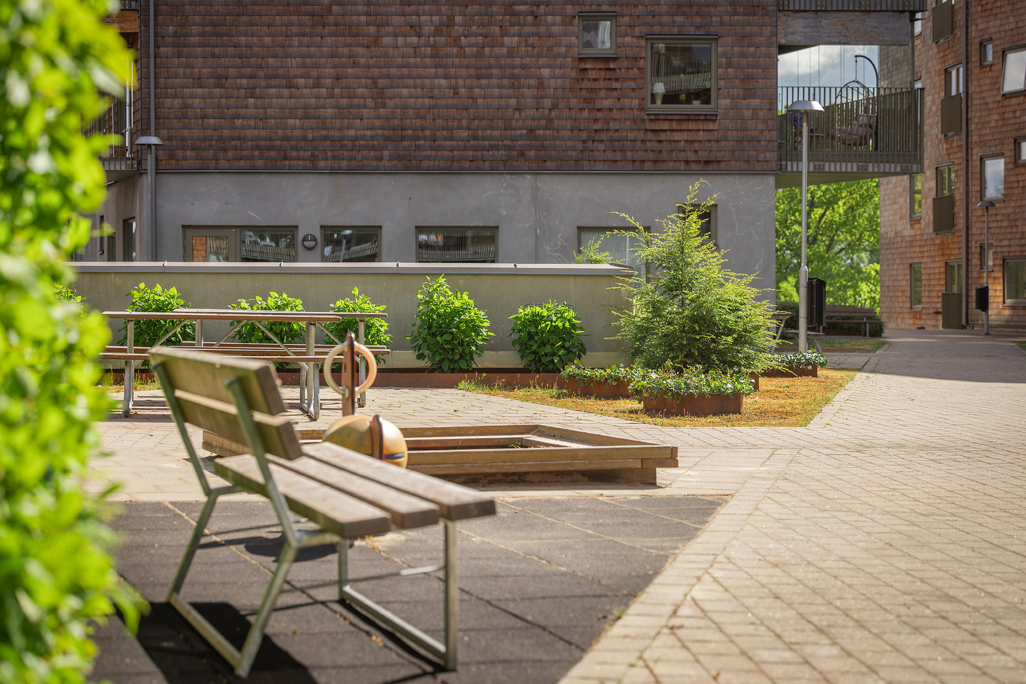 Byggnaderna uppfördes i två etapper, med massivträstomme som bärande materialval och cederspånpanel på fasaderna. Resultatet är ett kvarter med låg klimatpåverkan, sund inomhusmiljö och gedigen byggkvalitet – där varje bostad präglas av både funktion och karaktär.