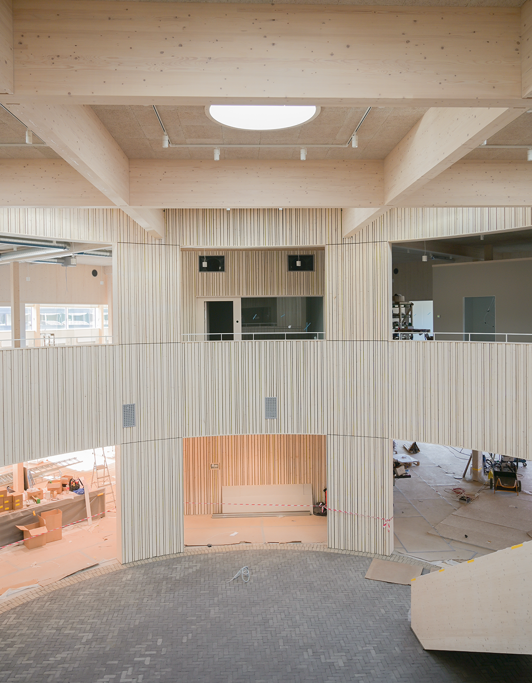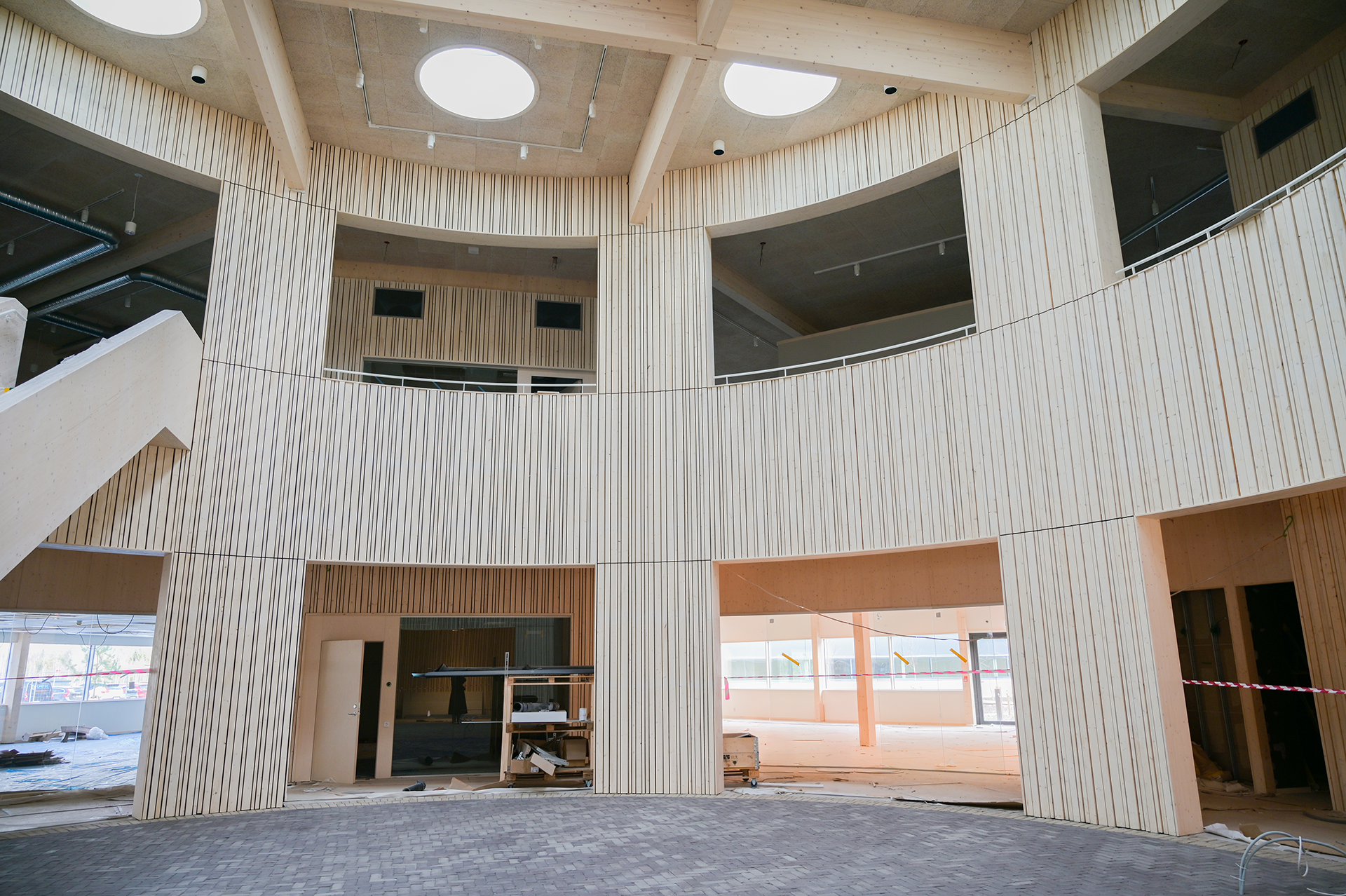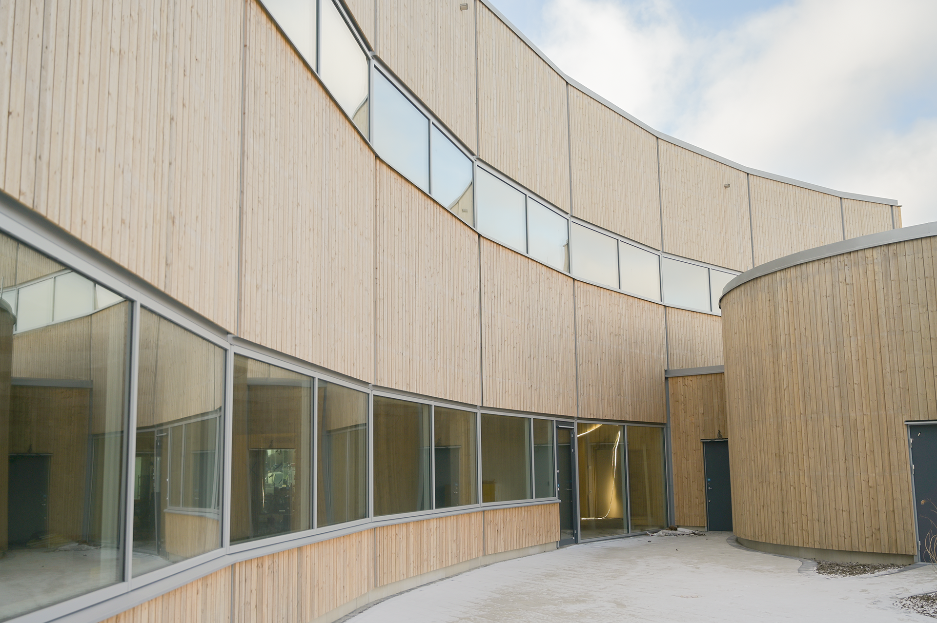 Byggnaden uppförs i samverkansentreprenad, där KL-trä och limträ utgör den bärande stommen i det nybyggda kontoret (Etapp 3). Valet av trä ger inte bara ett klimatmässigt lyft – det bidrar också till en varm och hälsosam inomhusmiljö, med kortare byggtid och färre transporter.